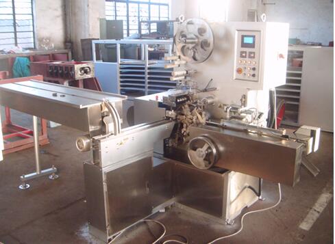 This machine is designed especially for packing square products like bubble gum, square hard candy and soup cubes (bouillon cubes).Upon request, a complete set with two wrappers can be equipped to wrap individual candies first, and then pack five pieces of candy in a stick.